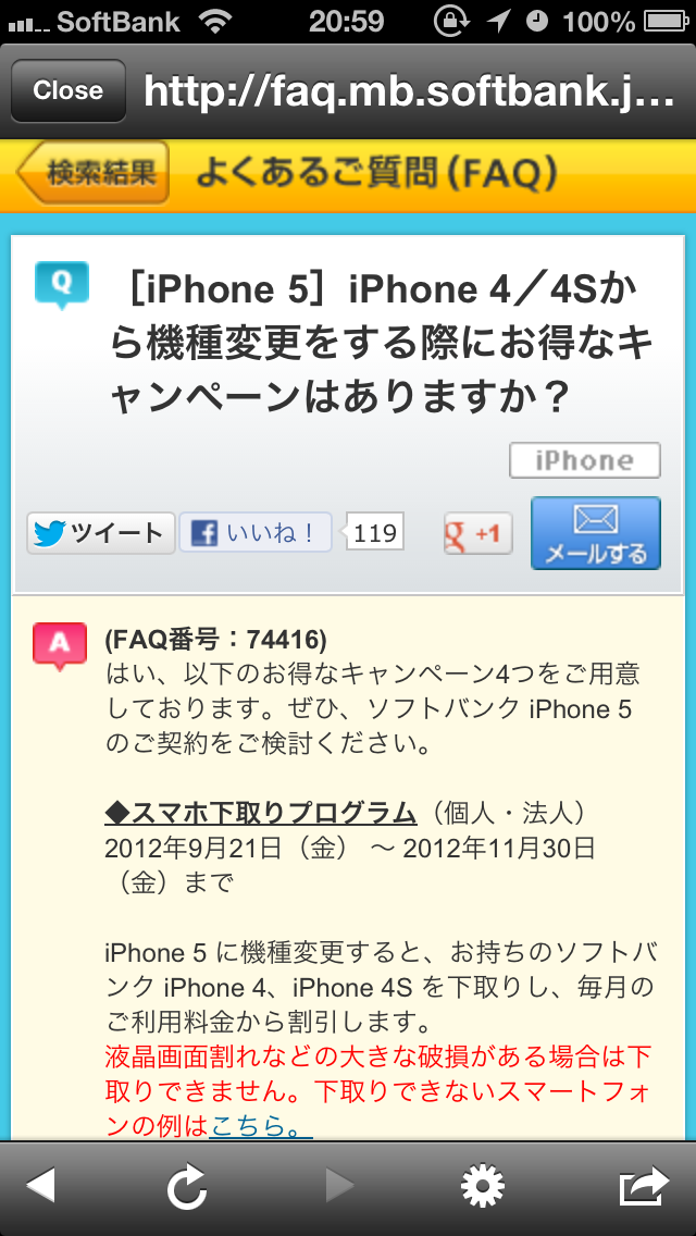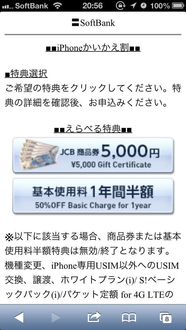 キャンペーン自体の存在は知っていながらも、ウェブサイト上では「ソフトバンクケータイのからの買い替え」との記述だったので、iPhoneからの買い替えはだめだろうなぁ〜と勝手に決めつけてました。